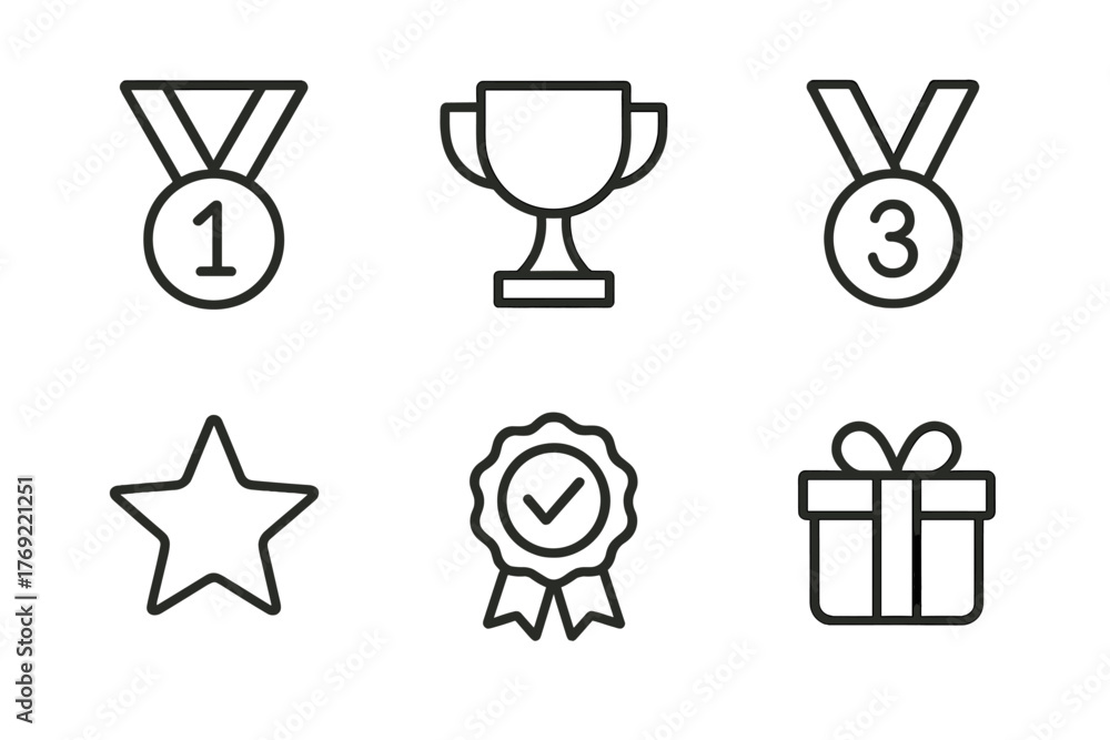 Achievement icons: medal, trophy, star, ribbon, gift symbols #1769221251