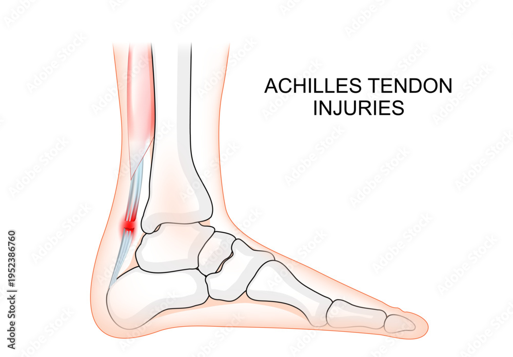 Achilles tendon Injuries. Human foot with bones and Achilles tendon. #1952386760