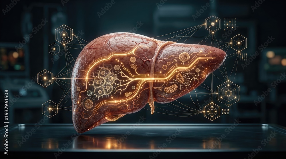 Advanced medical illustration of a liver anatomy scientific research lab 3d visualization high-tech environment #1937961508