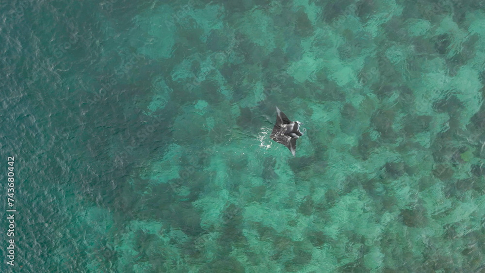 Aerial Photo of a Manta Ray Swimming in the Ocean #743680442