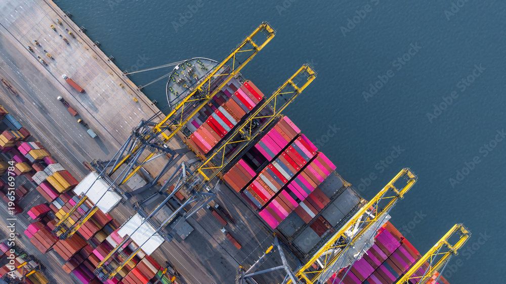 Aerial view Container cargo ship loading unloading container import export sea port, Global trade business container cargo ship freight shipping commercial trade logistic transportation international. #1965169784