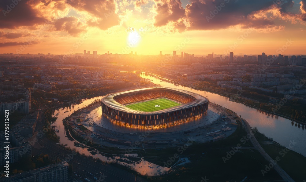 aerial view modern soccer stadium in city #1775012421