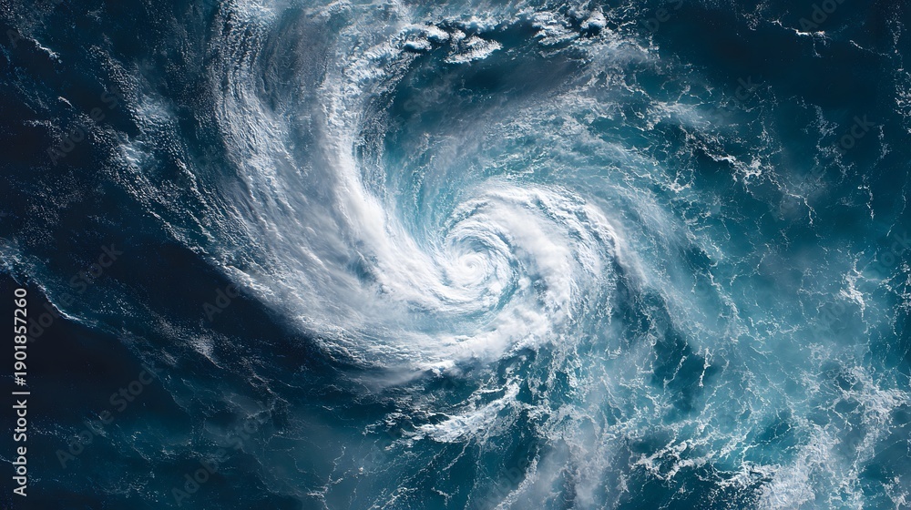 Aerial View of a Powerful Hurricane Swirling Over the Ocean, Dramatic Weather Phenomenon. #1901857260