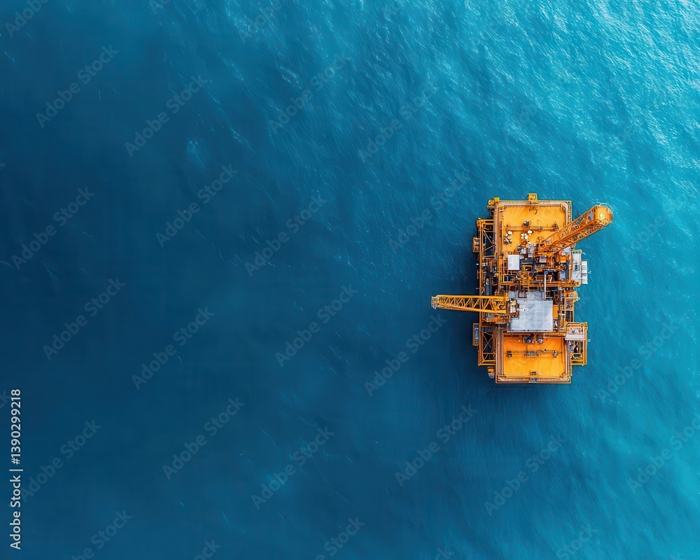 Aerial view of methane extraction platform in the ocean, surrounded by metallic infrastructure #1390299218