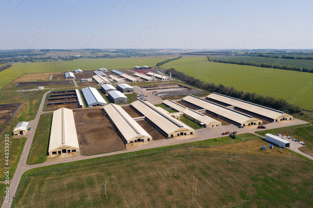 Aerial view of new modern dairy farm. #448339331
