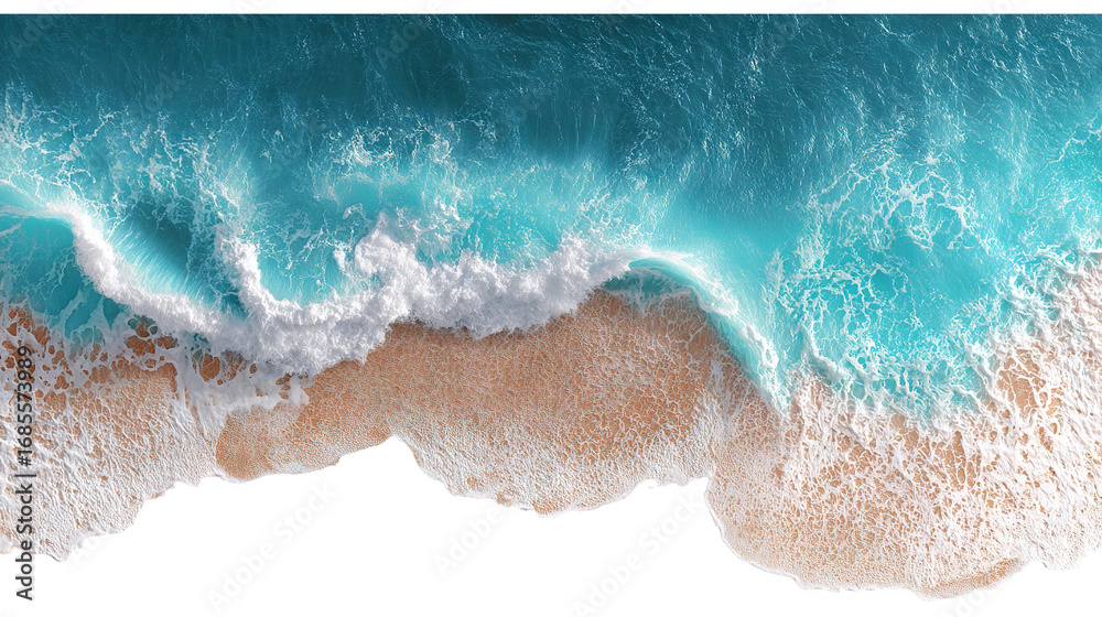 Aerial view of ocean waves crashing isolated on transparent white background, clipping path #1685573989