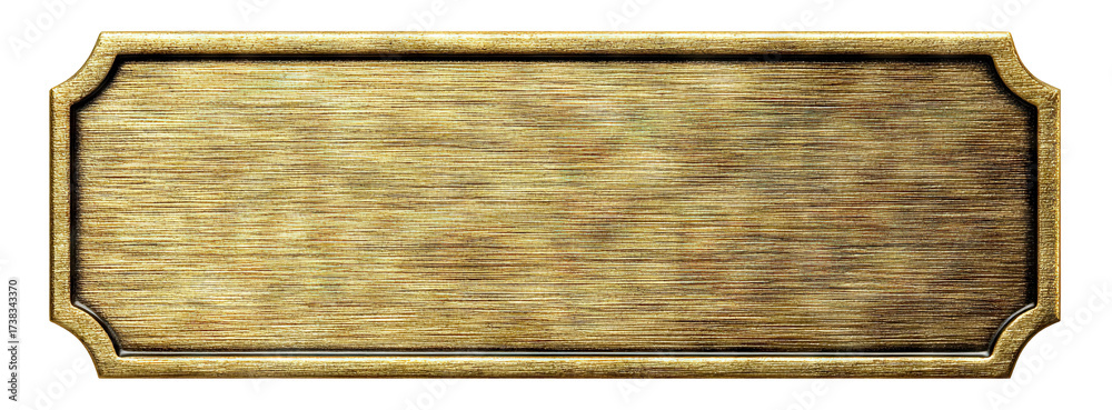 Aged golden nameplate with brushed texture, isolated on transparent cutout background #1738343370