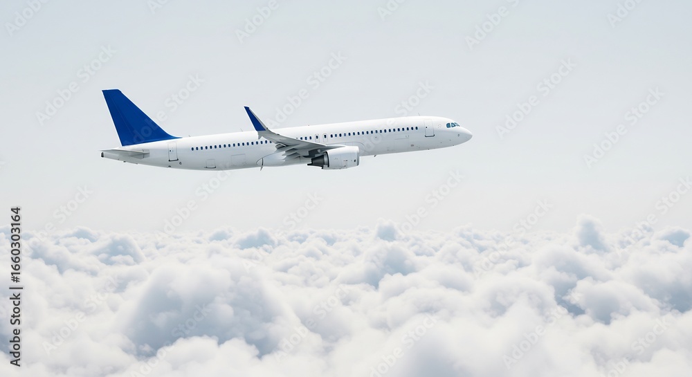 白い旅客機 雲海を滑空 穏やかな光 美しい景色. AI Generated #1660303164