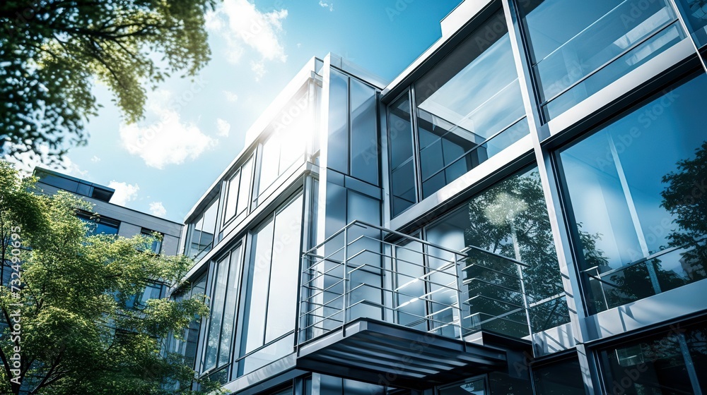 AI generated illustration of an exterior of a large building, featuring multiple windows #732490695