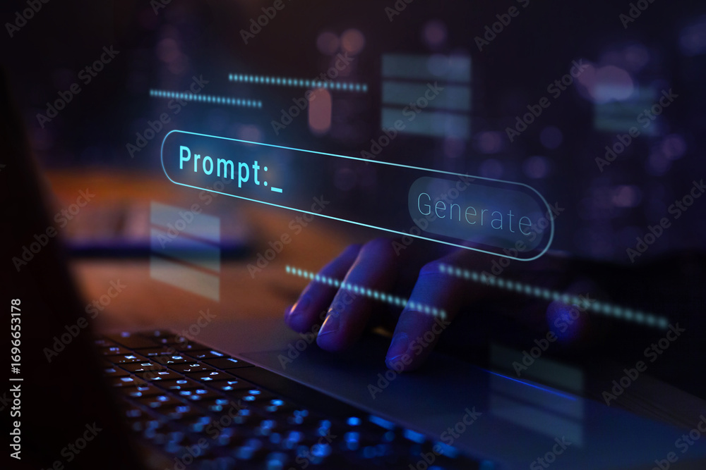 AI prompt to generate image or text, futuristic AI-powered prompt generation interface #1696653178