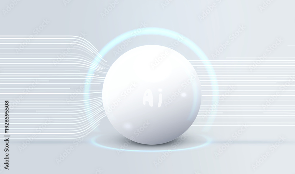 Ai technology dynamic ball. Artificial Intelligence white sphere globe with AI logo. Machine learning intelligence concept. Big data innovation technology. Electronic circle with connect white lines. #1926595508