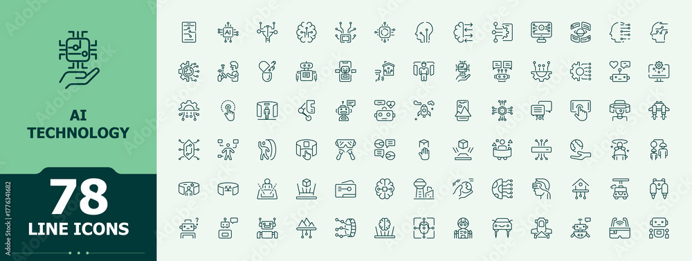 Ai Technology icon set. Containing machine, future, artificial, robot, intelligent, automation, digital. Technology icon set. Vector icons collection. Pixel perfect. Vector illustration. #1776341682