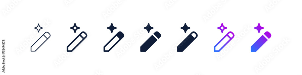 AI writing or smart edit icon set. editing pen sparkle stars symbol , Generative, generated AI logo gradient. for Artificial intelligence, intelligent content creation, seo, writing, or smart tools #1752494375