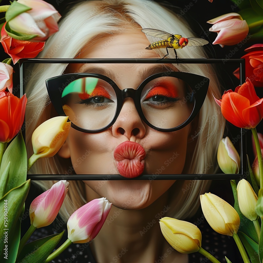 Air Kiss with Tulips: A Moment of Spring Romance #758904944
