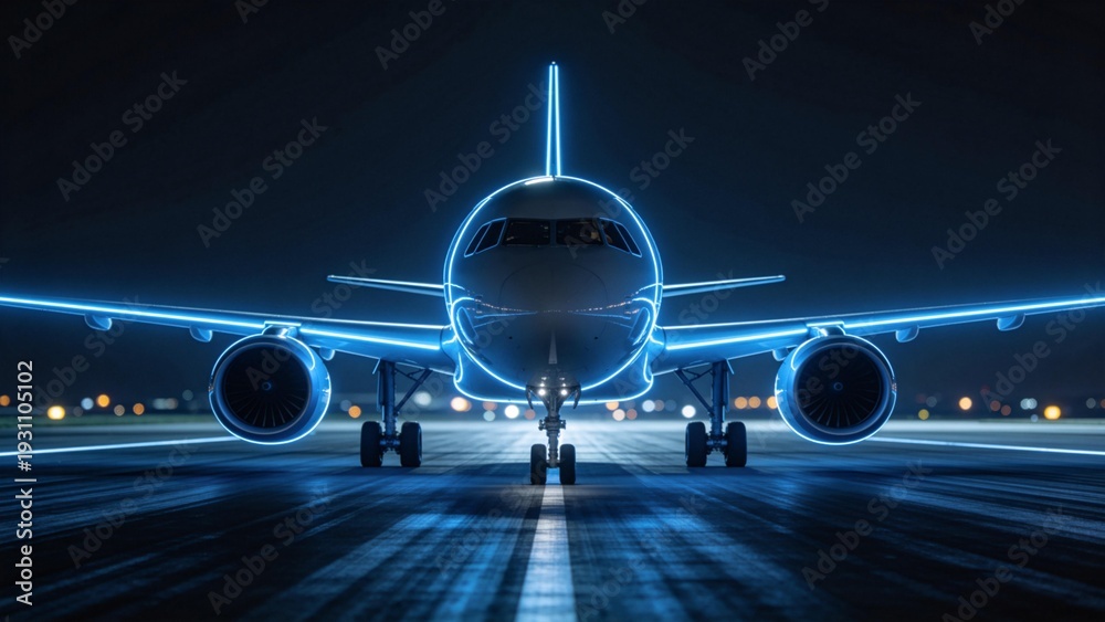Airliner with neon lights on runway #1931105102
