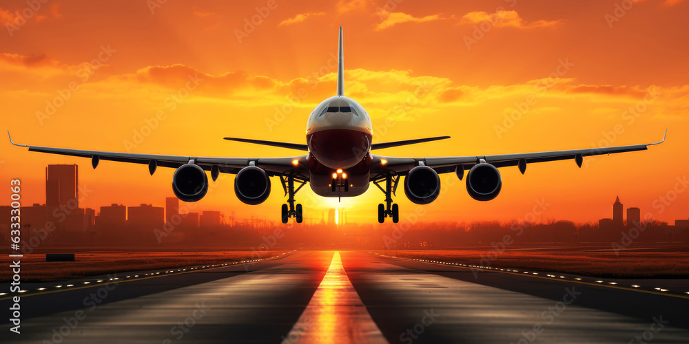 airplane or jumbo jet plane taking off from airport runway #633330063