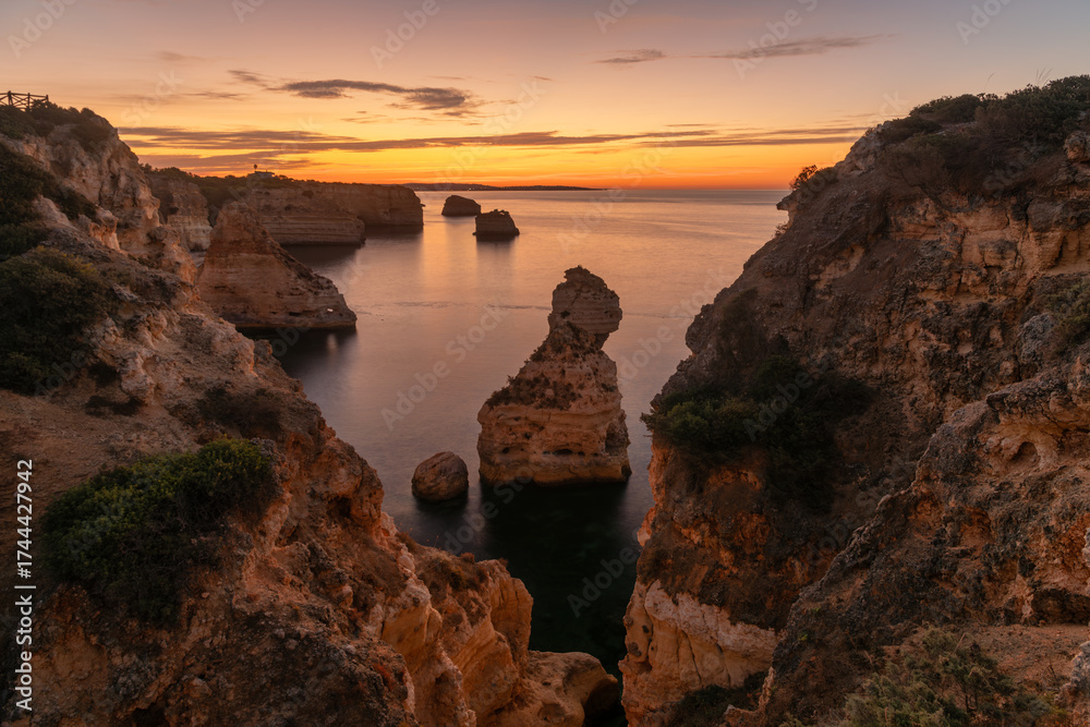 Algarve Coast in Morning Light - Praia da Marinha, Algarve, Portugal #1744427942