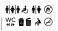 All gender restroom signs set. Gender neutral toilet icons. Left and right arrows. No Smoking. Trash Can, rubbish bin. Vector flat pictogram collection for web, mobile app, office, mall, restaurant. #759059785