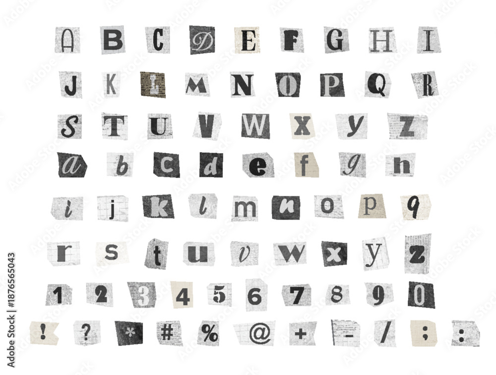Alphabet collection of scrap letters, collage style. Vector font illustration. #1876565043
