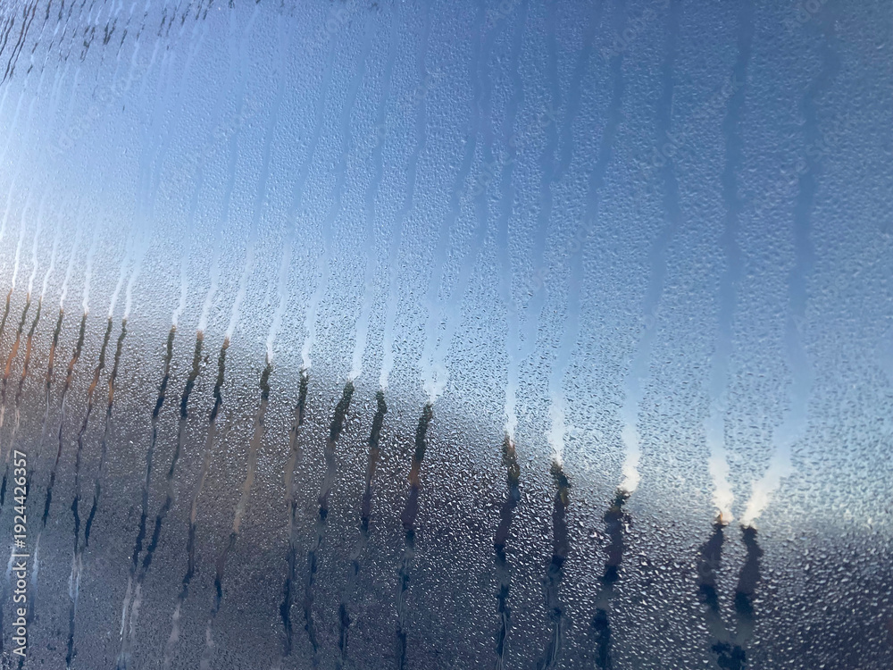 amanecer desde los cristales de una camper autocaravana empañados con rocío de la mañana en vacaciones ventana con vaho IMG_4418-as26 #1924426357