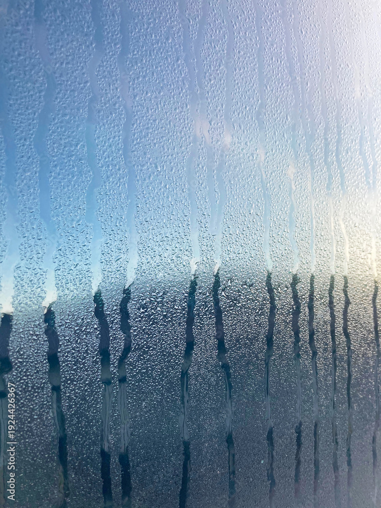 amanecer desde los cristales de una camper autocaravana empañados con rocío de la mañana en vacaciones ventana con vaho IMG_4422-as26 #1924426367