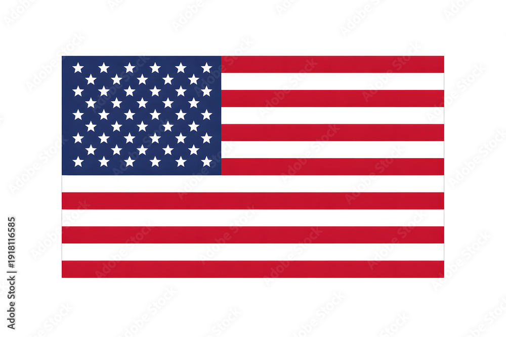 American flag illustration featuring fifty white stars on blue canton and thirteen red and white horizontal stripes design #1918116585