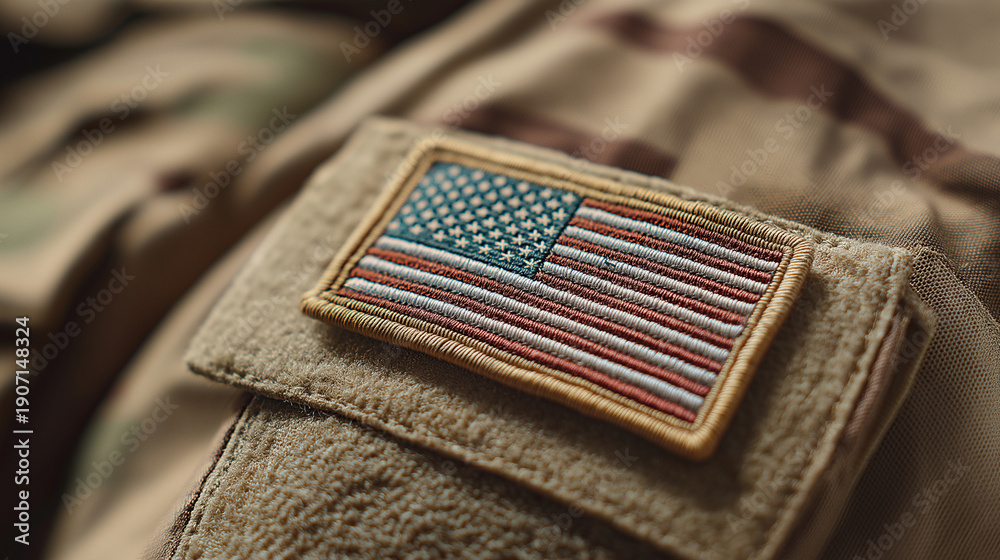 American flag patch on military uniform sleeve, symbolizing patriotism, service, freedom, national defense, veteran honor, and military life, a symbol of united states pride and dedication #1907148324