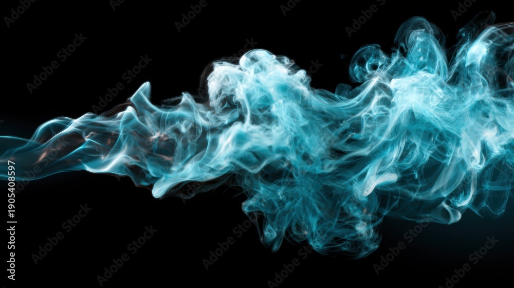 An abstract representation of vibrant smoke trails swirling fluidly in striking turquoise hues, symbolizing energy, movement, and the interplay of colors in modern art. #1905408597