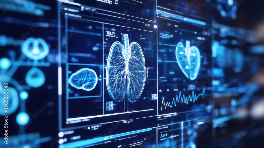An AI powered health diagnostic tool, analyzing patient symptoms and medical history to suggest possible conditions, Medical tech style #1365233646