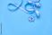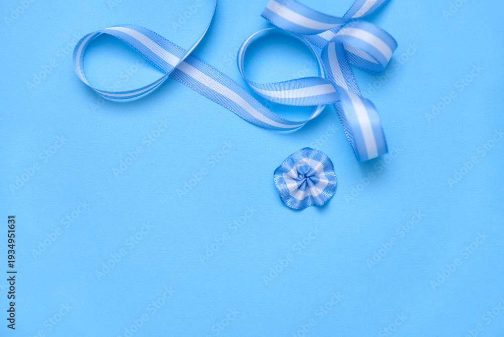 An Argentine flag ribbon and a cockade, escarapela, on a light blue background in a design with copy space. Concept: celebration of national holidays or national achievements. #1934951631