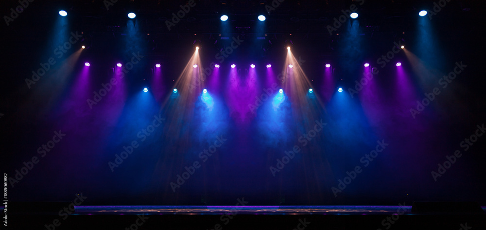 An empty stage of the theater, lit by spotlights and smoke before the performance #1889060982
