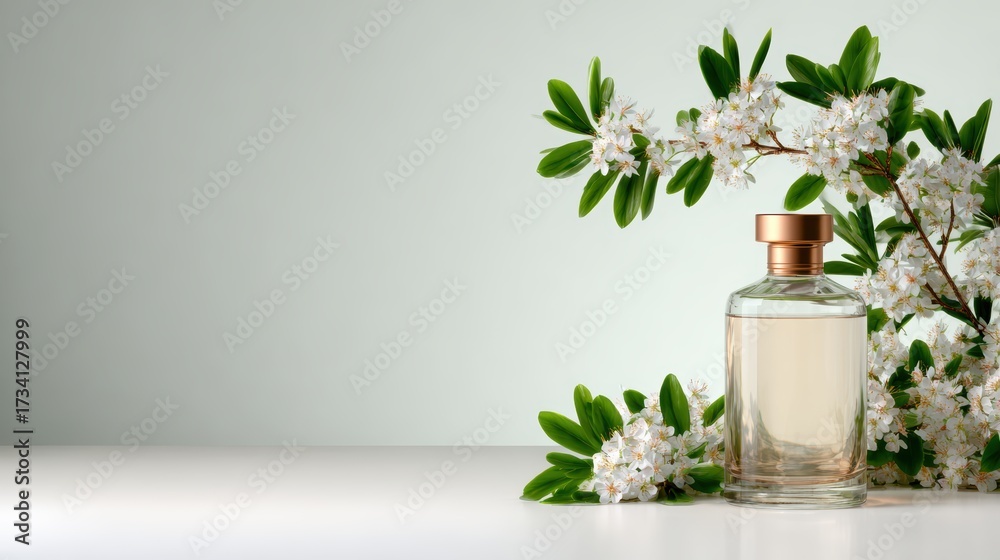 An exquisite perfume bottle adorned with floral elements, capturing the essence of fragrance and beauty in an elegant design that enhances any vanity or personal collection. #1734127999