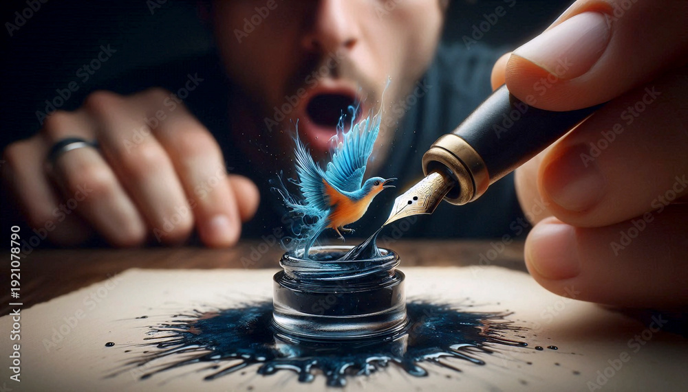 An ink blot transforming into a watercolor bird, Ai generated image #1921078790