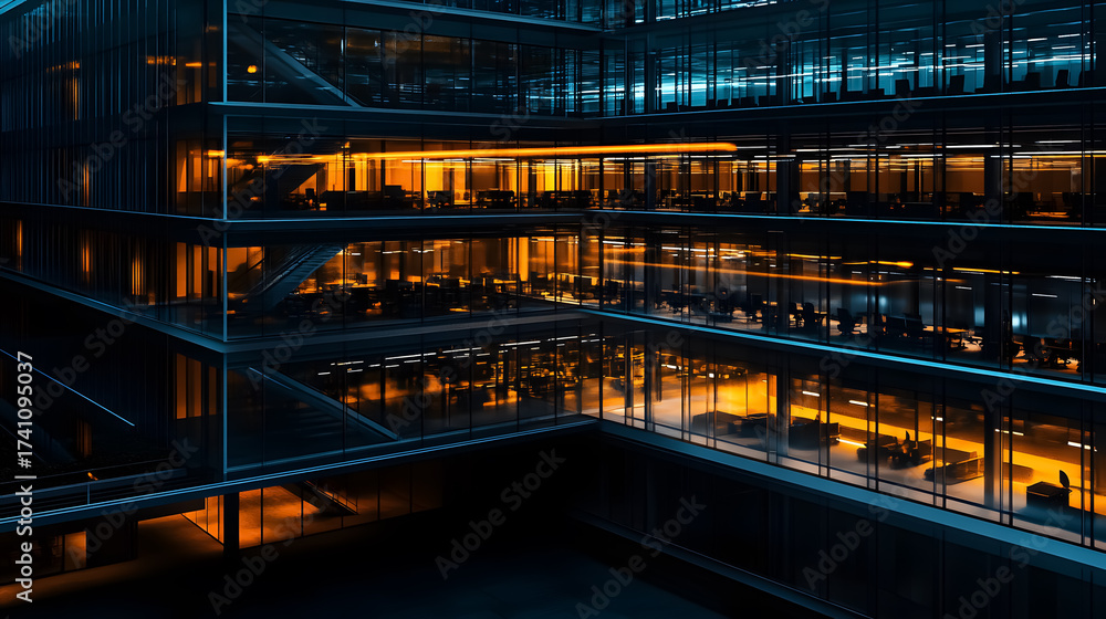 An office building illuminated at night. #1741095037