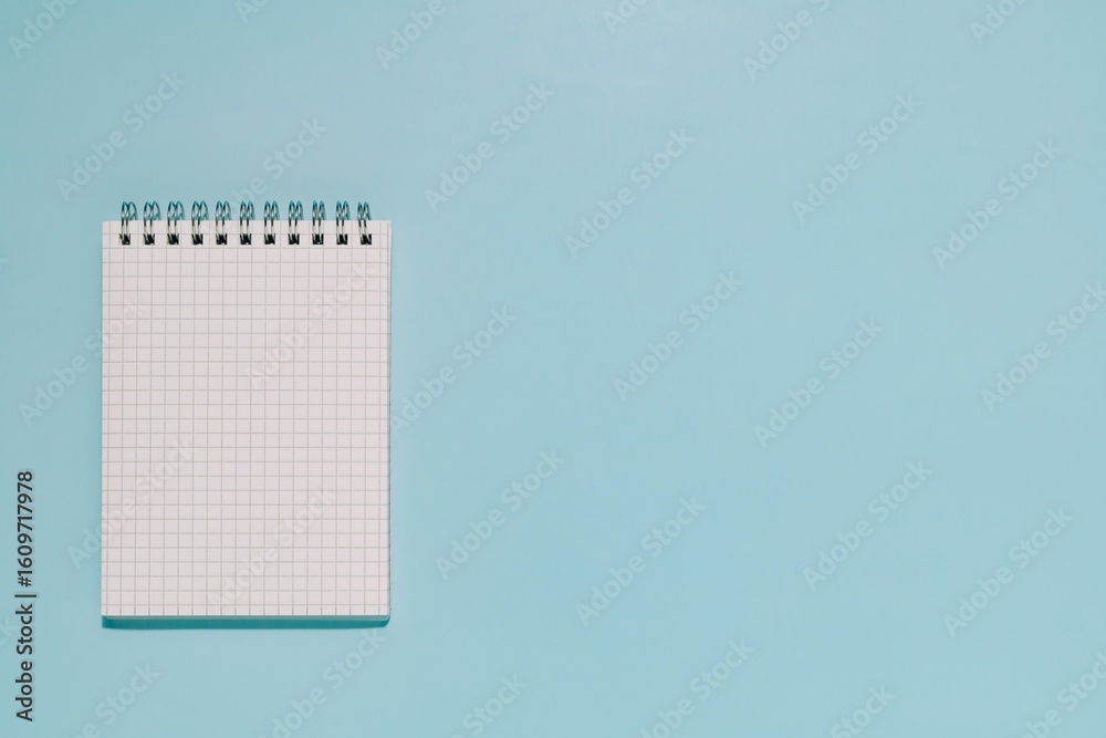 An open, blank grid notepad on a clean, light blue background. Perfect for themes of planning, ideation, learning, and new projects. #1609717978