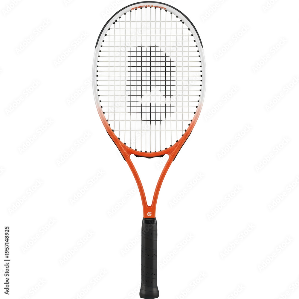 An orange and black tennis racket with a white string isolated on transparent background #1957148925