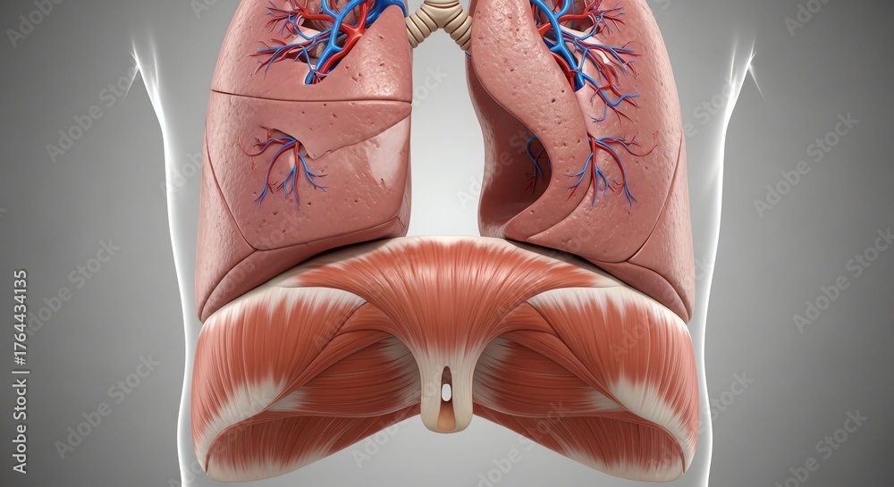 Anatomical Illustration of Human Lungs and Diaphragm in Medical Style #1764434135