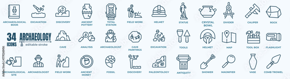 Ancient Artifacts and Archaeology Line Icons - Editable Vector Pack #1791268416