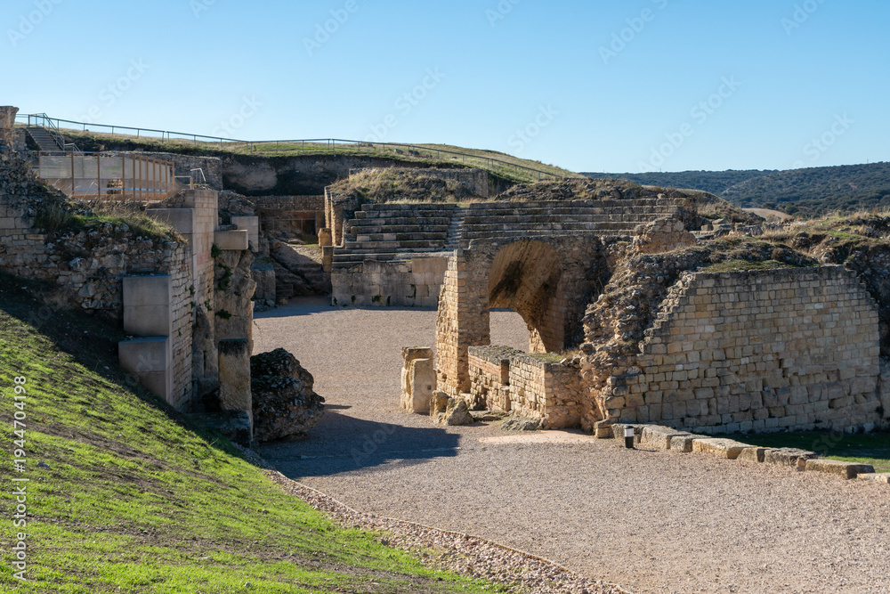 Ancient Roman amphitheatre ruins in the archaeological park of Segobriga in Cuenca, Castilla La Mancha, Spain. #1944704198