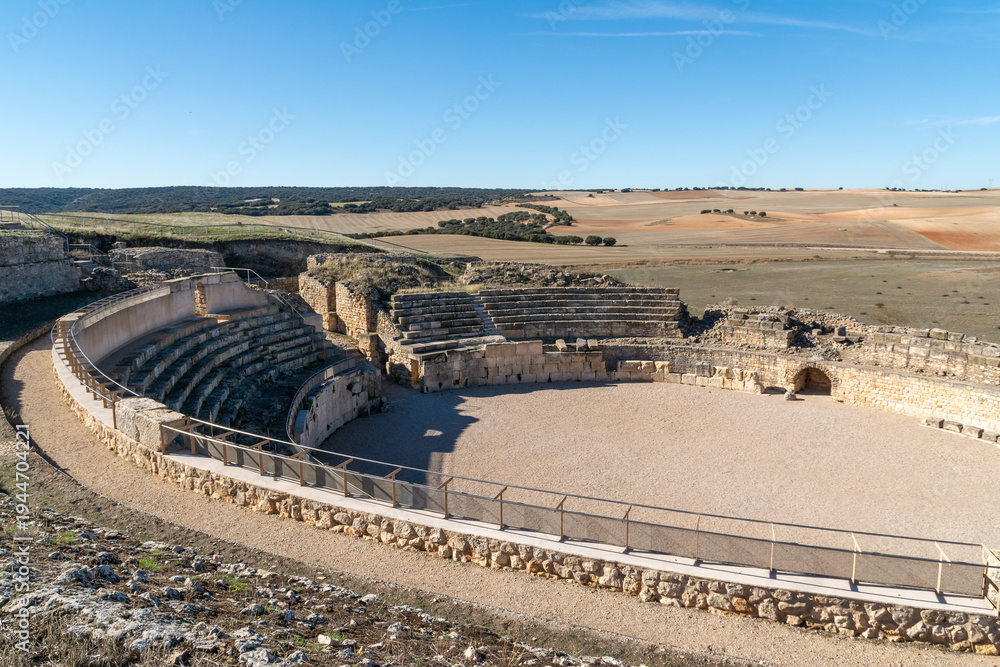 Ancient Roman amphitheatre ruins located at Segobriga archaeological park in Cuenca, Castilla La Mancha, Spain. #1944704221
