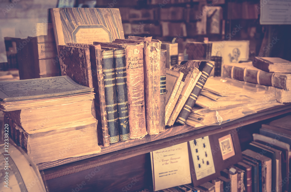 Antique books in antiquarian bookshop #122338220