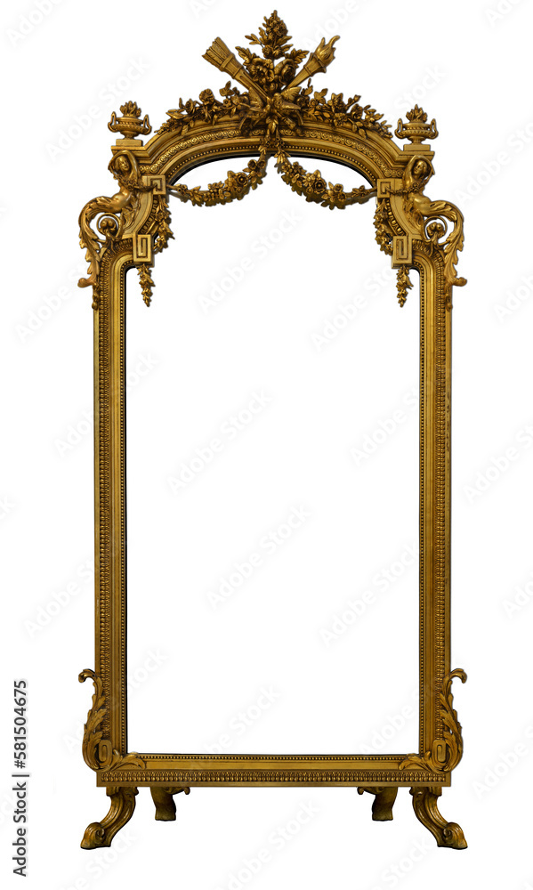 Antique museum gilded frame on legs for mirror isolated on transparent background #581504675