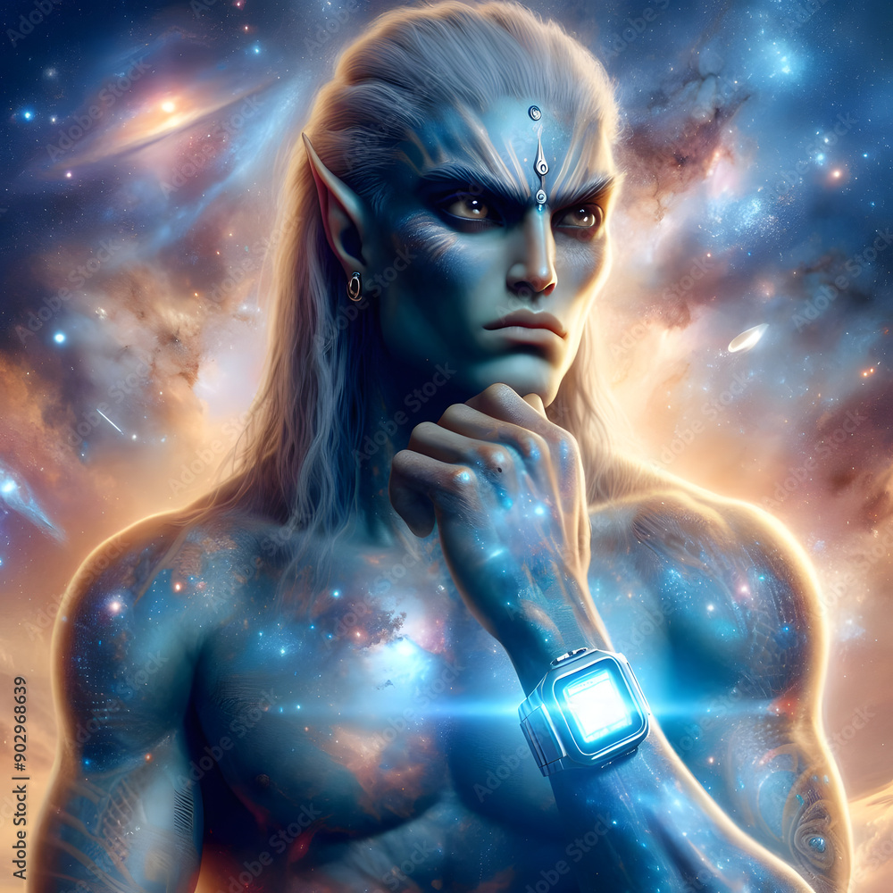 Anunnaki Warrior of Technology | A strong and majestic Anunnaki warrior wearing a high-tech watch, symbolizing the fusion of ancient culture and technological advancement. #902968639