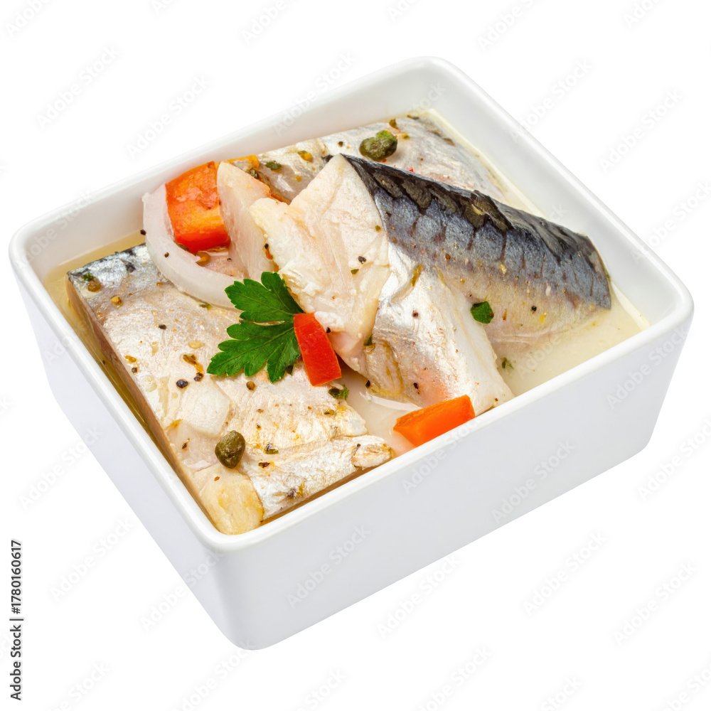 Appetizing tuna tiradito in a citrus tiger's milk sauce, a light and refreshing dish isolated on a plain white background #1780160617