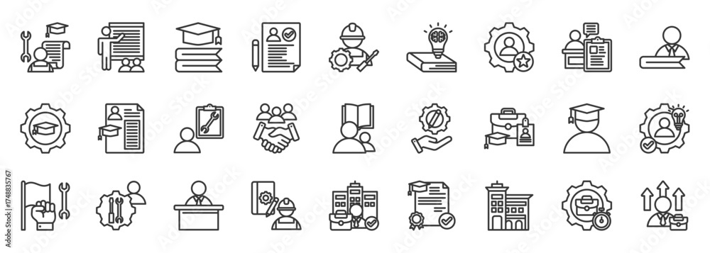 apprenticeship icons set outline collection for job search and opportunity #1748835767