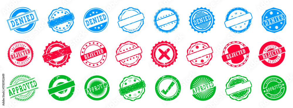 Approved and rejected stamp and medal. Green approved and red rejected icon with grunge. Approved, rejected, denied grunge stamp #1785952649