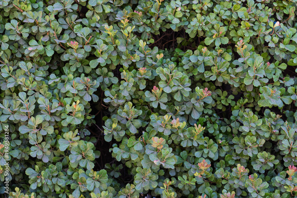 Arbusto con hojas verdes y brotes rojizos #1949581284
