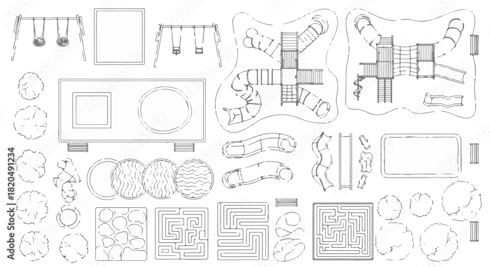 Architectural site plan design elements for playground, park, and outdoor landscape layout vector collection isolated PNG with Transparent Background #1820491234