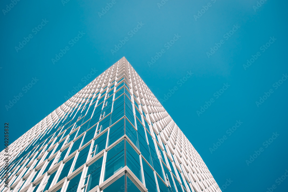Architecture - skyscraper with plain blue sky and reflections #640285832
