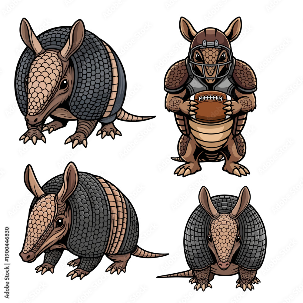 Armadillo Mascot Vector Set with Football Player Athlete Character #1900446830